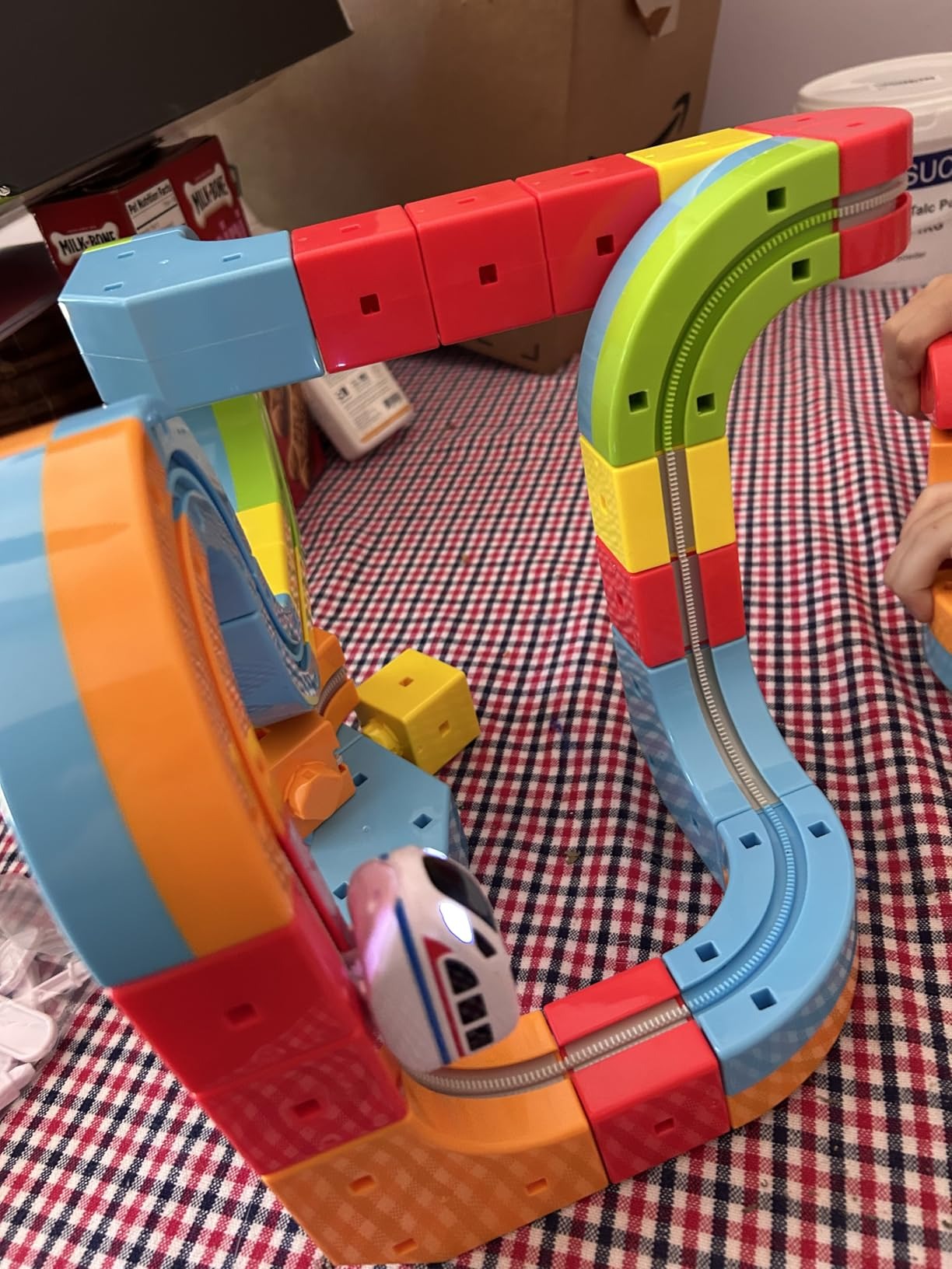 "Bought it for my son’s 5th birthday. He figured it out right away and built his own looping track. Super satisfying to watch. Even my husband joined in!"