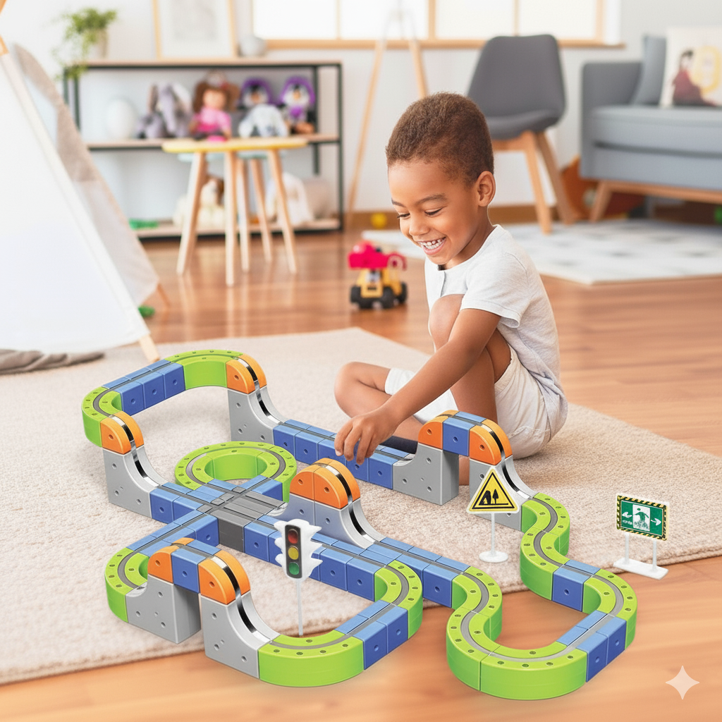 With over 80 magnetic pieces, kids as young as 3 can build their first loop, while older ones design complex 360° tracks. One toy. Endless possibilities